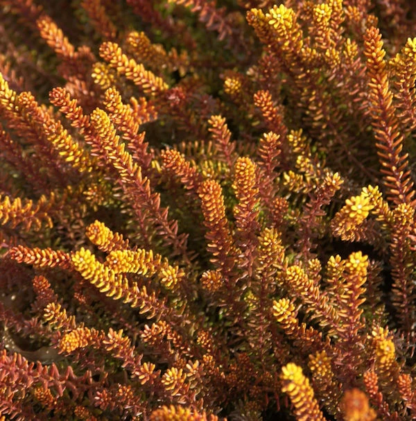 Die Pflanze wird in einer Charge von 10 Pflanzen angeboten. Das Bild zeigt die im Sommer grüne Pflanze in ihrem prächtig bunten Herbstlaub. Die Schwarze Krähenbeere, botanisch Empetrum nigrum, kann ca. 50 cm hoch werden und bildet einen reich verzweigten teppichartigen Strauch. Die Blätter sind immergrün und werden bis 6 mm lang und 2 mm breit. Die Farbe der eher unscheinbaren Blüten ist bei den männlichen blassrosa und bei den weiblichen purpurfarben. Bis Mitte Juli wachsen dann zahlreiche essbare schwarze Beeren heran. Die Die Schwarze Krähenbeere ist eine kriechende und Teppich bildende Gartenpflanze.